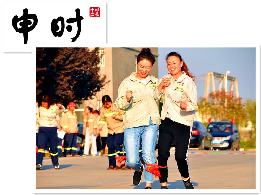 申時(shí)(15:00—17:00)辦公樓 前舉辦的職工趣味活動(dòng)熱鬧非凡,每個(gè)職工的臉上無(wú)不洋溢著燦爛的笑容。