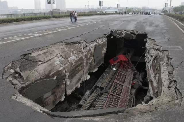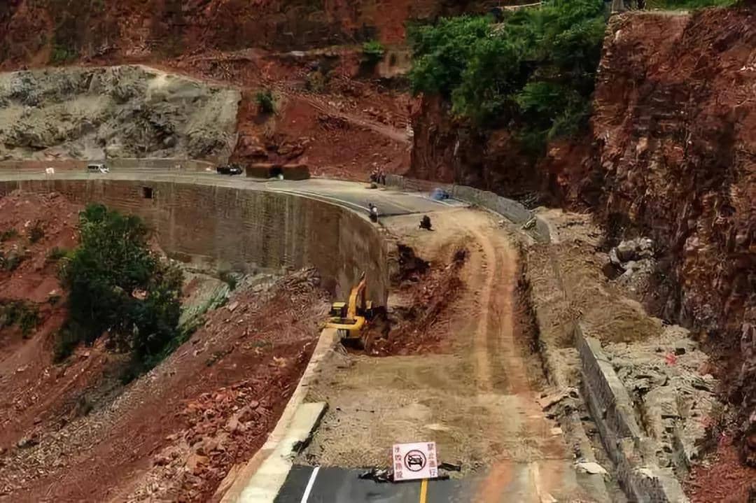 云南新路,通車的第二天出現(xiàn)坍塌。
