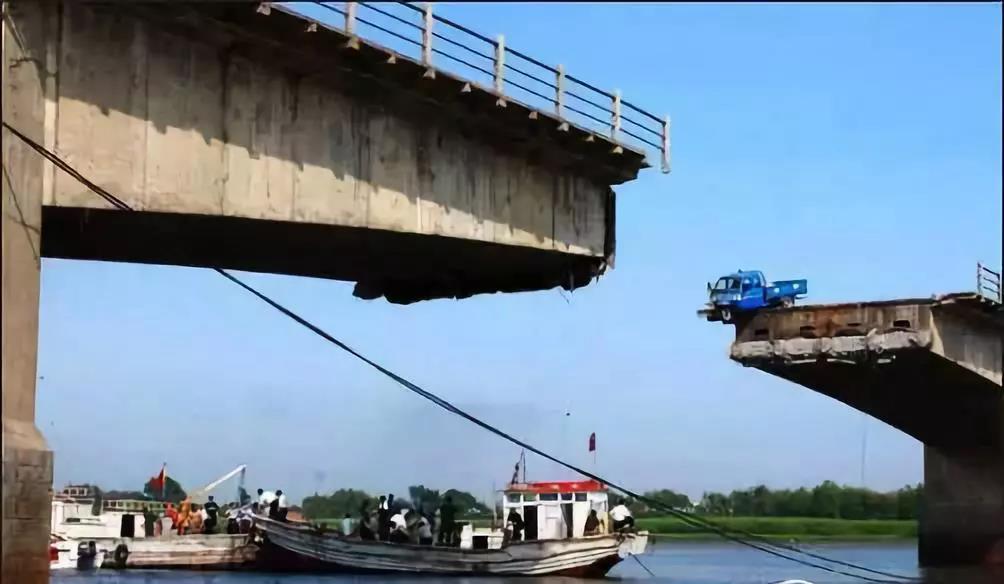 津晉高速公路匝道橋坍塌事故現(xiàn)場,不等你拆,我自己先拆了。九江大橋,沒船結(jié)實(shí)的下場。