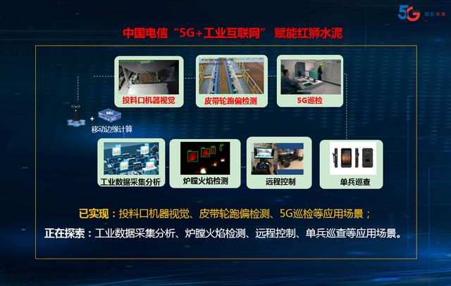 一直以來,中國(guó)電信在“5G+工業(yè)互聯(lián)網(wǎng)”領(lǐng)域開展廣泛研究與實(shí)踐,碩果累累。2019年,中國(guó)電信攜手浙江中控藍(lán)卓、紅獅水泥和中興通訊合作成立了5G智能制造創(chuàng)新實(shí)驗(yàn)室,共同推進(jìn)5G工業(yè)互聯(lián)網(wǎng)平臺(tái)在流程工業(yè)中的更多創(chuàng)新應(yīng)用研發(fā)。其聯(lián)合打造的基于5G+MEC+supOS的“5G+工業(yè)互聯(lián)網(wǎng)”平臺(tái)解決方案,可實(shí)現(xiàn)生產(chǎn)過程視覺分析、設(shè)備參數(shù)采集、人員安全管理、危險(xiǎn)區(qū)域巡檢和AR遠(yuǎn)程維護(hù)等,已經(jīng)在浙江桐廬紅獅水泥5G智慧工廠正式上線并率先落地運(yùn)行。