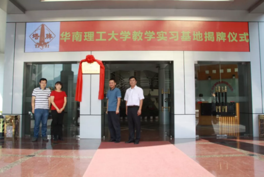 10月22日, 塔牌集團(tuán)在總部大樓舉行華南理工大學(xué)教學(xué)實(shí)習(xí)基地揭牌儀式,塔牌集團(tuán)總經(jīng)理何坤皇,黨委書(shū)記、工會(huì)主席李斌,華南理工大學(xué)材料學(xué)院副院長(zhǎng)殷素紅教授、輔導(dǎo)員李儉老師共同為“華南理工大學(xué)教學(xué)實(shí)習(xí)基地”揭牌。塔牌集團(tuán)黨委副書(shū)記、常務(wù)副總經(jīng)理徐政雄,副總經(jīng)理丘增海、丘偉軍,各級(jí)管理技術(shù)干部和華工畢業(yè)實(shí)習(xí)生等參加了揭牌儀式。