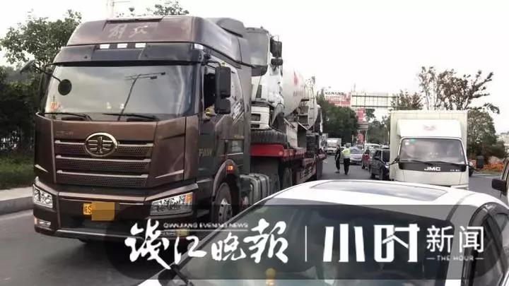 據(jù)了解,這4輛水泥攪拌車(chē)屬于同一公司所有,因業(yè)務(wù)需要,需轉(zhuǎn)移到其他城市,為節(jié)省運(yùn)費(fèi),所屬公司想出“奇招”,將其放至半掛車(chē),以“車(chē)背車(chē)”的方式拖運(yùn)。(來(lái)源:錢(qián)江24小時(shí))