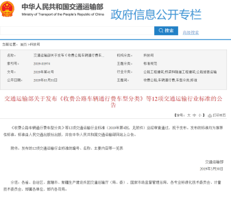 前不久,交通運輸部發(fā)布了《收費公路車輛通行費車型分類》行業(yè)標(biāo)準(zhǔn)的公告,意味著按車(軸)型收取通行費,并且新的車型劃分標(biāo)準(zhǔn)已正式發(fā)布,新標(biāo)即將進入施行階段。新標(biāo)準(zhǔn)中的一個細節(jié)值得關(guān)注,那就是實施日期由預(yù)計的2020年1月1日,提前到了2019年11月1日(本周五),足見新標(biāo)準(zhǔn)實施的迫切性。