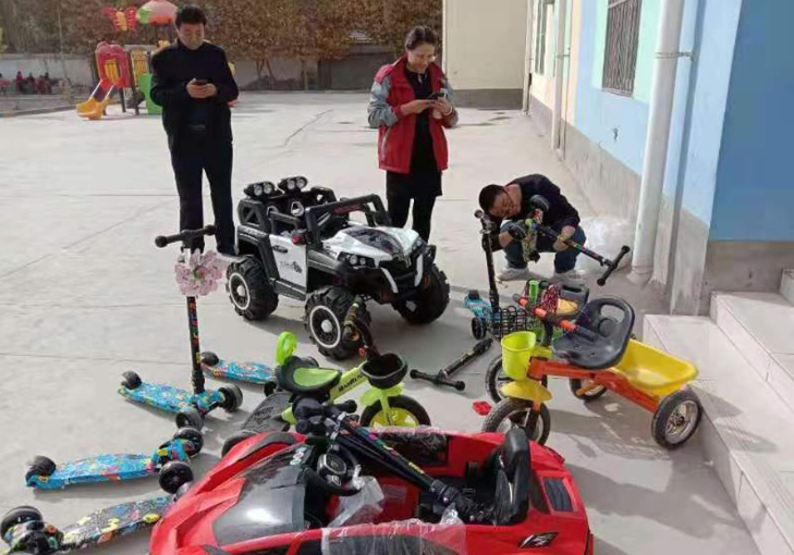 幼兒自行車、滑板等,共計(jì)4000余元的娛樂器材和兒童玩具,送到