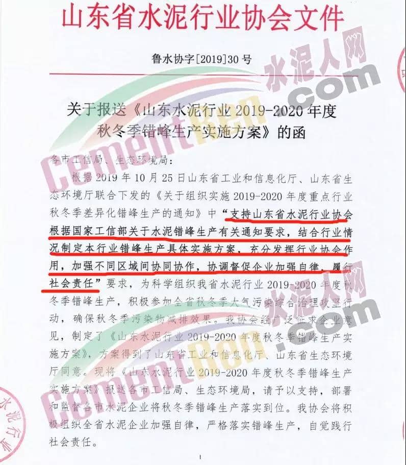 山東省水泥行業(yè)協(xié)會發(fā)布的《山東水泥行業(yè)2019-2020年度秋冬季錯峰生產(chǎn)實施方案》稱,為積極應(yīng)對秋冬季氮氧化物和臭氧污染,為建設(shè)美麗山東做出應(yīng)有貢獻,結(jié)合山東水泥行業(yè)特點,山東水泥行業(yè)協(xié)會經(jīng)廣泛征求企業(yè)意見,特制定山東水泥行業(yè)2019-2020年度秋冬季錯峰生產(chǎn)實施方案。