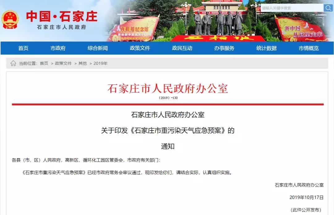 前不久,石家莊市人民政府辦公室也印發(fā)了《石家莊市重污染天氣應(yīng)急預(yù)案)。