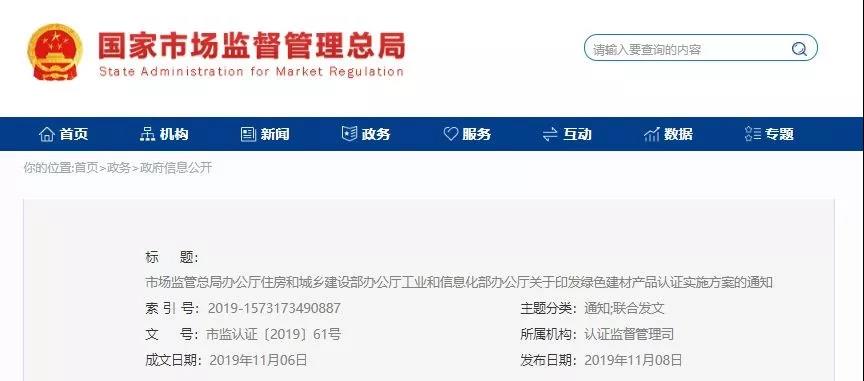 市場(chǎng)監(jiān)管總局辦公廳 住房和城鄉(xiāng)建設(shè)部辦公廳工業(yè)和信息化部辦公廳關(guān)于印發(fā)綠色建材產(chǎn)品認(rèn)證實(shí)施方案的通知市監(jiān)認(rèn)證〔2019〕61號(hào) 各省、自治區(qū)、直轄市及新疆生產(chǎn)建設(shè)兵團(tuán)市場(chǎng)監(jiān)管局(廳、委)、住房和城鄉(xiāng)建設(shè)廳(委、局)、工業(yè)和信息化主管部門: