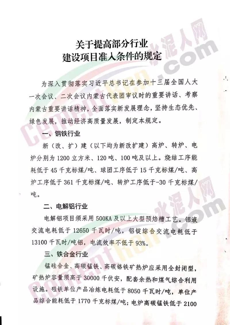 日前,水泥人網(wǎng)自內(nèi)蒙古自治區(qū)工信及獲悉,本月初自治工信廳聯(lián)合發(fā)改委聯(lián)合下發(fā)《關于提高部分行業(yè)建設項目準入條件規(guī)定的通知》。