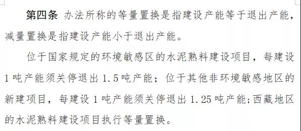 水泥人網(wǎng)小編注意到,于2018年1月1日開始實施的《辦法》中明確減量置換是指建設產(chǎn)能小于退出產(chǎn)能。位于國家規(guī)定的環(huán)境敏感區(qū)的水泥熟料建設項目,每建設1噸產(chǎn)能須關停退出1.5噸產(chǎn)能;位于其他非環(huán)境敏感地區(qū)的新建項目,每建設1噸產(chǎn)能須關停退出1.25噸產(chǎn)能;西藏地區(qū)的水泥熟料建設項目執(zhí)行等量置換。