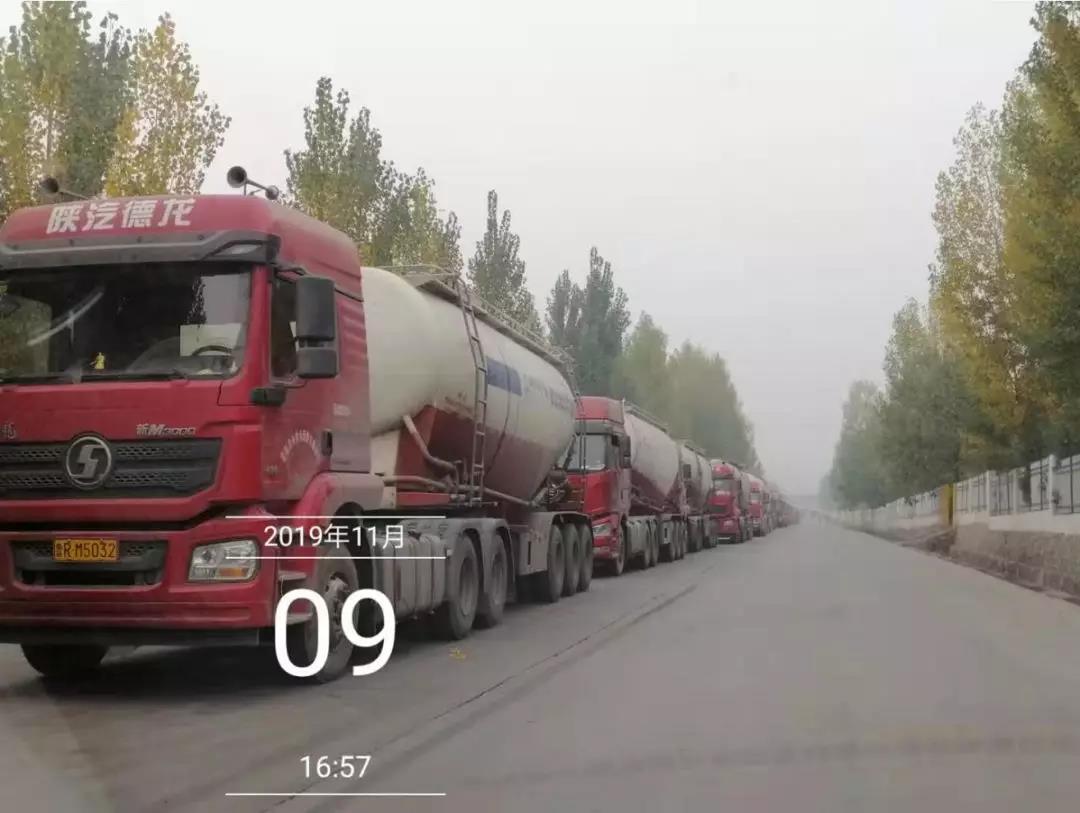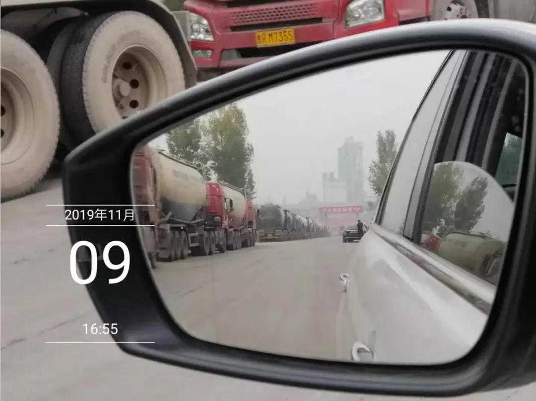 2019年11月9日下午攝影師在河北某水泥廠門前拍下了“壯觀”的一幕。