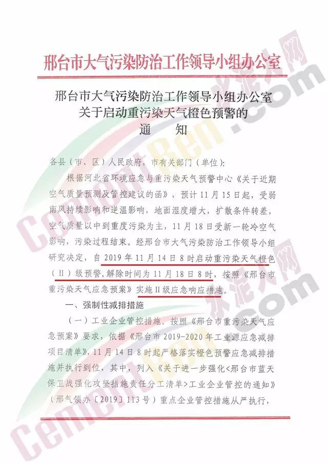 重污染天氣橙色預(yù)警,II級(jí)管控措施意味著水泥企業(yè)“窯磨全停”。水泥企業(yè)停產(chǎn)意味著庫存減少或至無貨可發(fā)。繼而帶來市場(chǎng)上的一噸難求,價(jià)格上漲。近兩日水泥人的朋友圈關(guān)于水泥市場(chǎng)行情的關(guān)鍵熱詞多為“漲價(jià)”、“排隊(duì)”、“沒貨” ... ...昨日又曝出了另一個(gè)關(guān)鍵詞——“拒收預(yù)付款” 。換言之就是你提前給錢我也不能收了,確實(shí)沒貨了!!