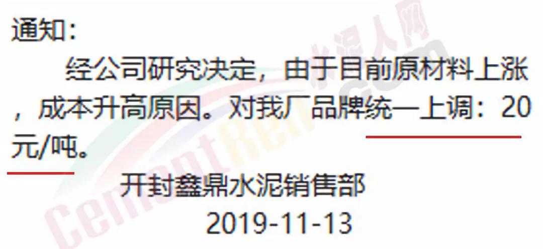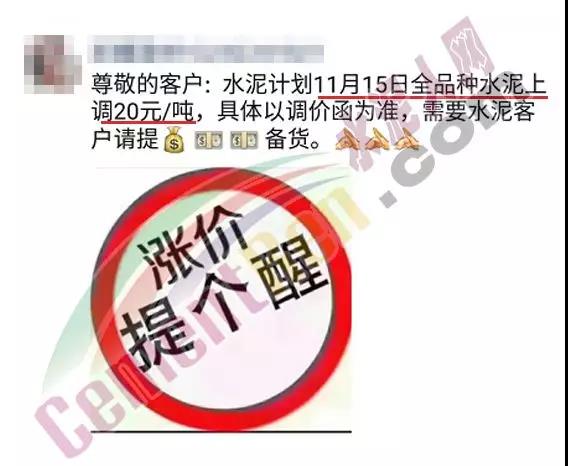 另外,隨著采暖季的到來,多區(qū)域水泥企業(yè)陸續(xù)進(jìn)入秋冬季停窯限產(chǎn)期。昨日山西區(qū)域多家企業(yè)通知由于原材料價(jià)格上漲,企業(yè)經(jīng)營成本大幅增加,為了維持企業(yè)正常的生產(chǎn)經(jīng)營上調(diào)水泥價(jià)格。