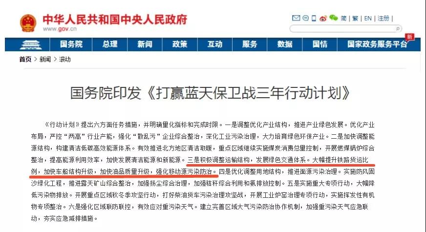 “公轉(zhuǎn)鐵”,是“調(diào)整運(yùn)輸結(jié)構(gòu)、增加鐵路貨運(yùn)量”背景下的動(dòng)作。顧名思義,就是要促使更多的大宗商品從公路運(yùn)輸轉(zhuǎn)到鐵路運(yùn)輸上來(lái)。這背后,和藍(lán)天保衛(wèi)戰(zhàn)息息相關(guān)。公轉(zhuǎn)鐵不僅僅是大宗商品運(yùn)輸從公路轉(zhuǎn)變?yōu)殍F路改變運(yùn)輸方式這么簡(jiǎn)單,在“車倒車”背后更是一筆筆關(guān)乎國(guó)家未來(lái)發(fā)展可持續(xù)性的“綠色賬”、“生態(tài)賬”。同時(shí)也是政府對(duì)于人民群眾綠水青山生活環(huán)境承諾的落實(shí),是國(guó)家對(duì)于綠色發(fā)展可持續(xù)的要求。
