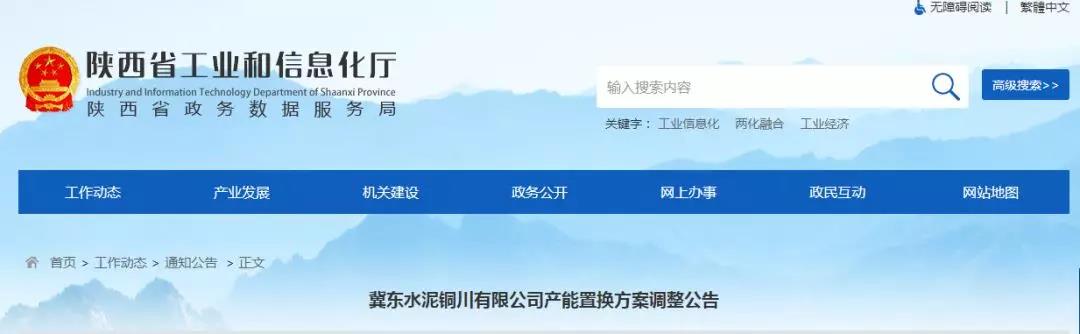 按照《陜西省工業(yè)和信息化廳關(guān)于調(diào)整冀東水泥銅川有限公司產(chǎn)能置換方案的函》(陜工信函〔2019〕664號)要求,將冀東水泥銅川有限公司新型干法熟料水泥生產(chǎn)線項目遷建方案公告如下: