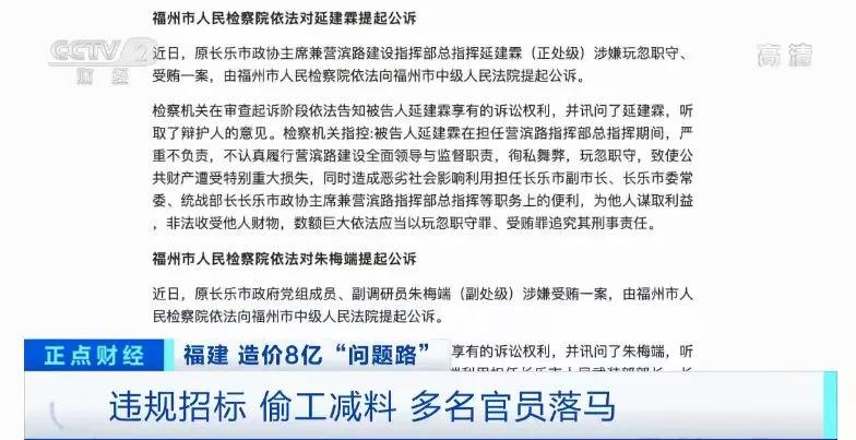 違規(guī)招標(biāo) 偷工減料,多名官員落馬營濱路通車沒多久,道路沉降、路面裂縫、坑洞等問題,就引來當(dāng)?shù)厝罕姀娏也粷M,老百姓的多次投訴引起了相關(guān)部門的高度重視。2018年,福州市紀(jì)監(jiān)委等相關(guān)部門介入調(diào)查。日前,福州市人民檢察院發(fā)布通報,依法對長樂營濱路建設(shè)指揮部兩位涉嫌貪腐官員提起公訴。當(dāng)?shù)卣俜焦?,營濱路存在違規(guī)招標(biāo)、偷工減料等嚴(yán)重問題。根據(jù)當(dāng)?shù)卣衲?1月公布的調(diào)查結(jié)果,營濱路不僅存在違規(guī)招標(biāo)、大面積圍串標(biāo)等問題,而且工程監(jiān)管嚴(yán)重缺位。