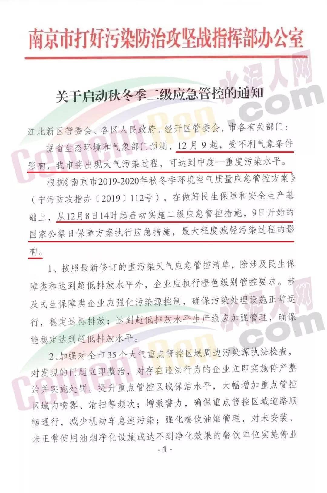 日前,江蘇省南京市打好污染防治攻堅(jiān)戰(zhàn)指揮部辦公室發(fā)布了《關(guān)于啟動(dòng)冬季二級(jí)應(yīng)急管控的通知》稱,根據(jù)《南京市2019-2020年秋冬季環(huán)境空氣質(zhì)量應(yīng)急管控方案》(寧污防攻指辦[2019]112號(hào)),在做好民生保障和安全生產(chǎn)基礎(chǔ)上,從12月8日14時(shí)起啟動(dòng)實(shí)施二級(jí)應(yīng)急管控措施,9日開始的國家公祭日保障方案執(zhí)行應(yīng)急措施,最大程度減輕污染過程的影響。