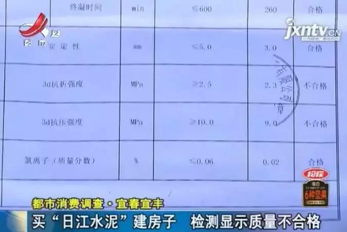 據(jù)了解,業(yè)主蔡師傅是今年8月份從水泥廠直銷處購買的21噸日江牌水泥。出現(xiàn)問題后,他聯(lián)系了市場監(jiān)管部門。在廠家、經(jīng)銷商都在場的情況下,由市場監(jiān)管部門的執(zhí)法人員抽檢了二十袋水泥,送往檢測機構(gòu)進行檢測。而根據(jù)檢測報告,蔡師傅購買的水泥,在3天抗折強度和3天抗壓強度這兩項均不合格。不僅如此,蔡師傅購買的水泥包裝袋上,連生產(chǎn)日期都沒有。