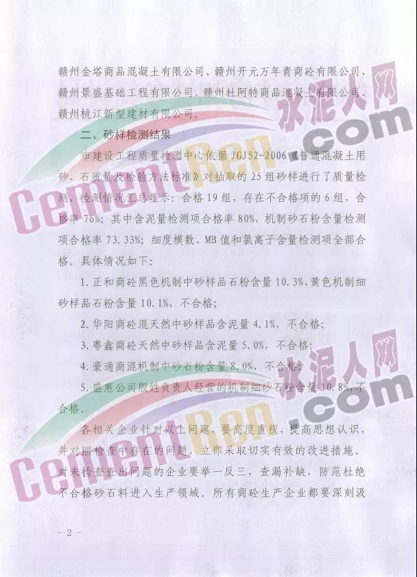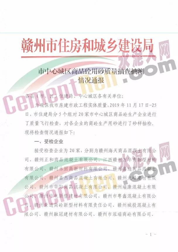 近日,江西省贛州市住建局分5個組對20家市中心城區(qū)商品砼生產(chǎn)企業(yè)進行了質(zhì)量飛行檢查,對各企業(yè)的商砼生產(chǎn)用砂進行了砂樣抽檢,其中5家商混企業(yè)檢測結(jié)果不合格。