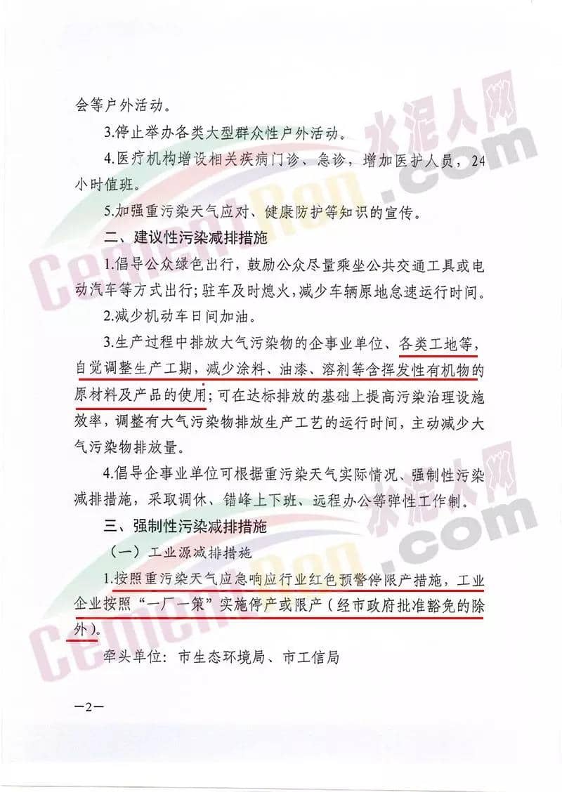 1 按照重污染天氣應(yīng)急響應(yīng)行業(yè)紅色預(yù)警停限產(chǎn)措施,工業(yè)企業(yè)按照“一廠一策”實施停限產(chǎn)(經(jīng)市政府批準(zhǔn)豁免的除外)。