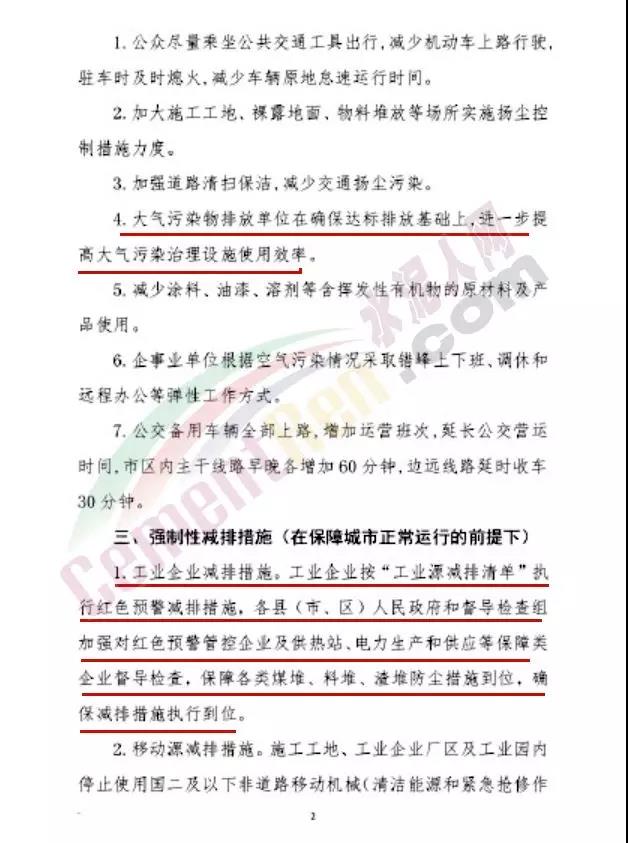 1.根據(jù)生態(tài)環(huán)境部《關(guān)于加強(qiáng)重污染天氣應(yīng)對夯實(shí)應(yīng)急減排措施的指導(dǎo)意見》,結(jié)合最新修訂的應(yīng)急減排清單,對工業(yè)企業(yè)采 取相應(yīng)減排措施;對納入重污染天氣應(yīng)急減排清單的企業(yè)加強(qiáng)監(jiān) 管,確保各類污染防治設(shè)施高效運(yùn)轉(zhuǎn),各項(xiàng)污染物穩(wěn)定達(dá)標(biāo)排放。