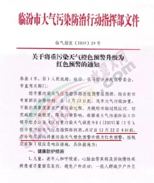 同一日,山西省生態(tài)環(huán)境廳通知,12月22日,山西省太原、臨汾、運(yùn)城大氣污染加重,可能出現(xiàn)重度甚至嚴(yán)重污染過程。為做好污染過程應(yīng)對,切實(shí)減輕污染程度,降低污染影響,3市分別調(diào)整重污染天氣預(yù)警級別,預(yù)警級別由橙色調(diào)整為紅色,同時(shí)啟動重污染天氣應(yīng)急預(yù)案紅色(一級)響應(yīng)。
