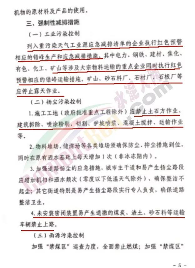 日前,唐山市人民政府發(fā)布《關(guān)于啟動重污染天氣Ⅱ級應(yīng)急響應(yīng)的通知》稱將于今日(12月23日)12時(shí)起全市啟動重污染天氣Ⅱ級應(yīng)急響應(yīng),解除時(shí)間另行通知。要求水泥行業(yè)企業(yè)嚴(yán)格按照《重污染天氣應(yīng)急工業(yè)源污染物減排清單》中“橙色預(yù)警減排措施”執(zhí)行。礦山、沙石料廠、石材廠、石板廠等停止露天作業(yè);施工工地停止土石方作業(yè)、建筑拆除、噴涂粉刷、護(hù)坡噴漿、混凝土攪拌等;未安裝密閉裝置易產(chǎn)生遺撒的煤炭、渣土、砂石料等運(yùn)輸車輛停止上路。詳情如下: