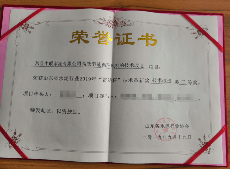 其中,高效節(jié)能循環(huán)風(fēng)機(jī)的技術(shù)改造項(xiàng)目榮獲山東省水泥行業(yè)2019年“雷法杯”技術(shù)革新獎(jiǎng)技術(shù)改造類(lèi)二等獎(jiǎng)。