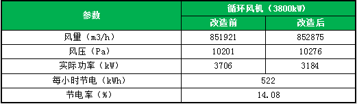 循環(huán)風(fēng)機(jī)改造前后數(shù)據(jù)對(duì)比