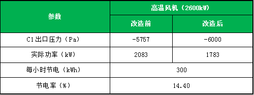 高溫風(fēng)機(jī)改造前后數(shù)據(jù)對(duì)比