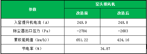 窯頭排風(fēng)機(jī)改造前后數(shù)據(jù)對(duì)比