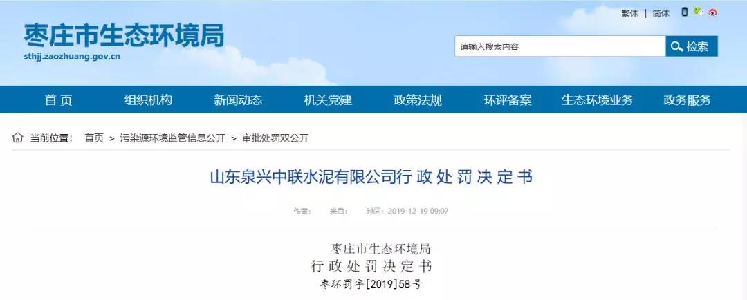 日前,棗莊市生態(tài)環(huán)境局發(fā)布了多份行政處罰決定書,其中有山東泉興中聯(lián)水泥有限公司、棗莊市恒仁水泥有限公司、棗莊市華奧商品混凝土有限公司等8家企業(yè)因環(huán)境污染被處罰,累計(jì)罰款共81.5萬元。