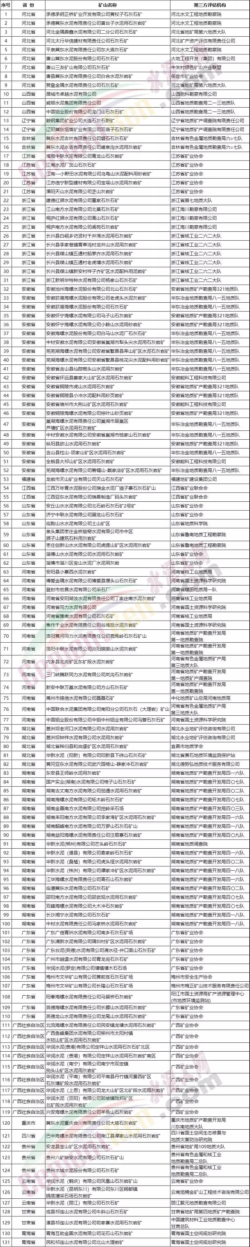 公示名單中包括海螺水泥、中聯(lián)水泥、南方水泥、中材水泥、天山水泥、祁連山水泥、華新水泥、華潤水泥、金隅冀東、山水水泥、紅獅水泥、金圓水泥等水泥集團(tuán)企業(yè)所屬礦山,其中石灰石礦山共132家,涉及區(qū)域包括河北省、山西省、吉林省、江蘇省、安徽省、福建省、江西省、山東省、湖南省、廣西壯族自治區(qū)、重慶市、四川省、貴州省、云南省、甘肅省、青海省等16個省自治區(qū)。