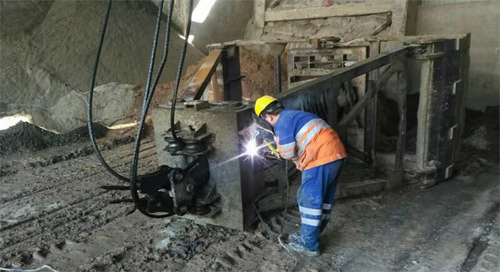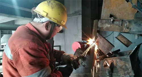 打那以后,每次到現(xiàn)場(chǎng)巡視,總能看見維修班的人在忙碌。路上相遇時(shí),他們肩扛手提,有時(shí)還推著焊機(jī)、氧氣瓶等物,微信群里也常見他們?cè)趲?kù)頂處理斜槽、天車上處理故障、在地上換斗提、焊管道的照片。給人的感覺,這是一個(gè)肯吃苦,能打硬仗的隊(duì)伍。