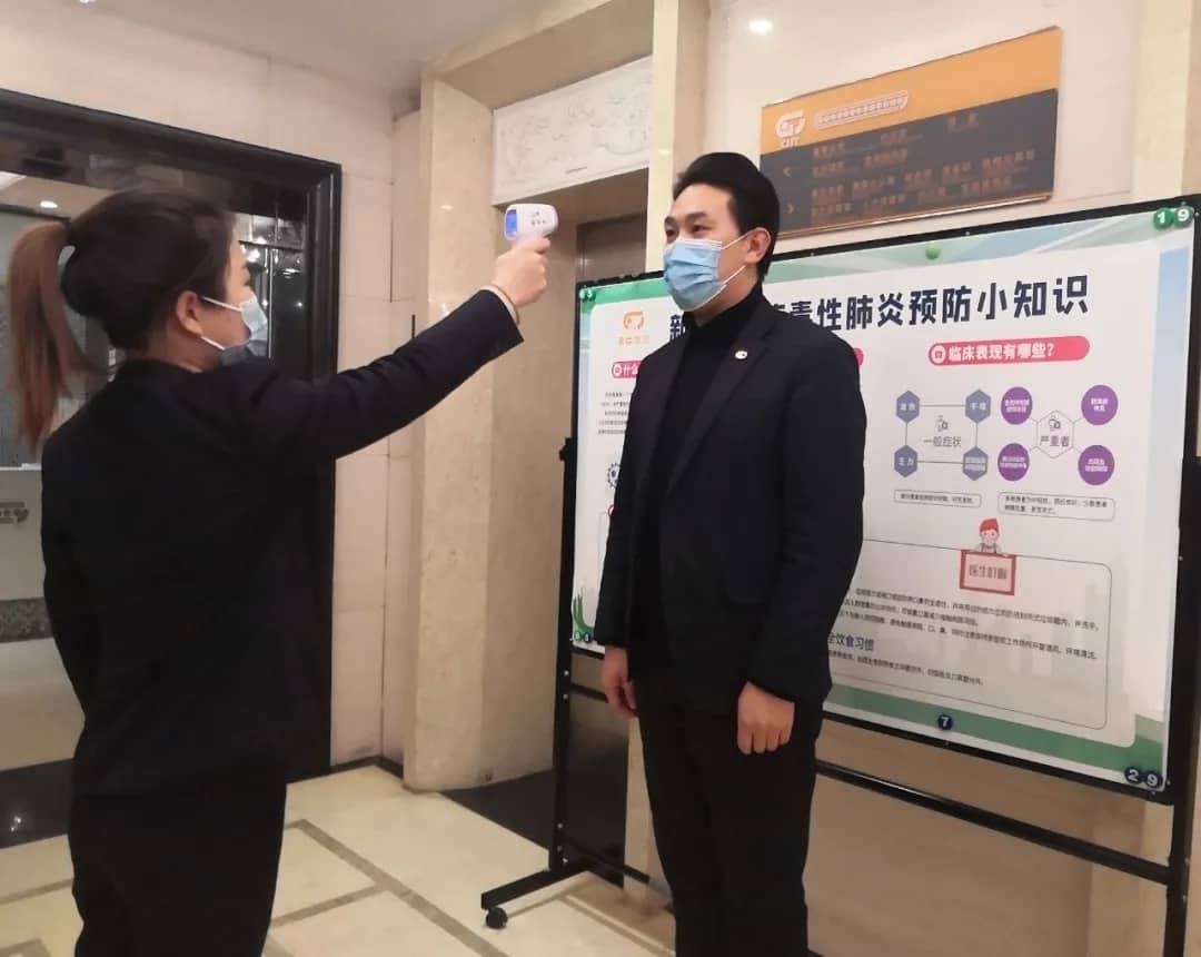 自新冠肺炎疫情發(fā)生以來(lái),春江集團(tuán)迅速成立以張洪梅董事長(zhǎng)為組長(zhǎng)的疫情防控工作領(lǐng)導(dǎo)小組,制定下發(fā)《新冠病毒應(yīng)急預(yù)案》、《春江集團(tuán)復(fù)工疫情防控工作方案》等文件,嚴(yán)格落實(shí)防控措施,購(gòu)買口罩、防護(hù)服、消毒粉、酒精、紅外測(cè)溫槍、溫度計(jì)等防護(hù)物資。除必要的值班人員外,其余人員一律不得進(jìn)廠,重點(diǎn)崗位人員穿防護(hù)服上崗,每日發(fā)放口罩,每日兩次量體溫,就餐采取一人一桌,同向就餐。組建由中高層領(lǐng)導(dǎo)、黨員、退役軍人為骨干的突擊隊(duì),每日對(duì)廠區(qū)、辦公樓、宿舍、餐廳等區(qū)域進(jìn)行消毒并做好記錄。保衛(wèi)部門嚴(yán)格人員出入登記、體溫測(cè)量及酒精消毒。
