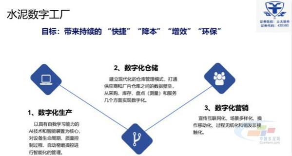 3月3日下午,在疫情對(duì)水泥行業(yè)的影響與應(yīng)對(duì)之策的線(xiàn)上分享會(huì)上,杭州云天軟件股份有限公司總經(jīng)理皇甫孜在《疫情下水泥企業(yè)如何開(kāi)展數(shù)字化營(yíng)銷(xiāo)》中表示,水泥數(shù)字工廠(chǎng)的目標(biāo)是帶來(lái)持續(xù)的“快捷”“降本”“增效”“環(huán)保”。