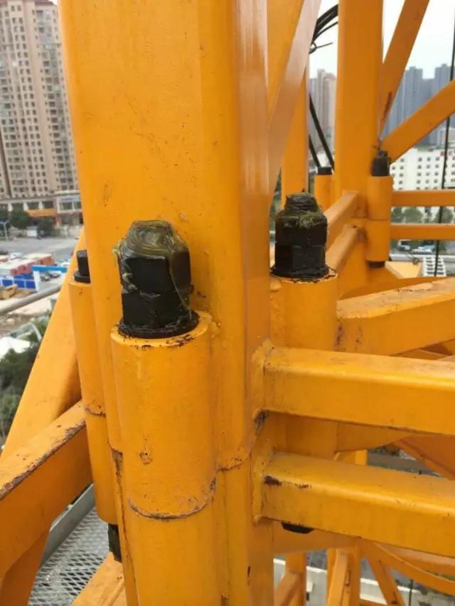 檢查中塔身標(biāo)準(zhǔn)節(jié)螺栓預(yù)緊力矩檢查可先采用直 觀法初檢,即檢查人員位于塔身標(biāo)準(zhǔn)節(jié)中間觀察塔身受拉主弦桿處的標(biāo)準(zhǔn)節(jié)聯(lián)接情況,如能看到標(biāo)準(zhǔn)節(jié)聯(lián)接處有微小縫隙則表明螺栓預(yù)緊力不夠;同時(shí),讓塔吊左右 旋轉(zhuǎn),如能聽到金屬的吱吱呀呀聲,也表明螺栓聯(lián)接不緊;之后再用力矩扳手或其他方法仔細(xì)排查,以提高檢查效率。