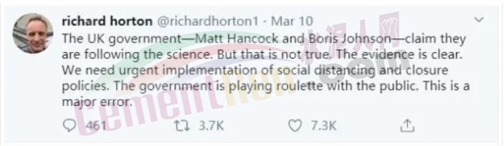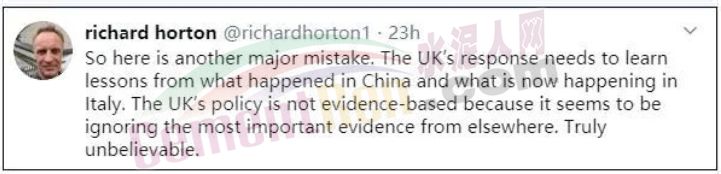 言辭更激烈的是國際權(quán)威醫(yī)學(xué)期刊《柳葉刀》的主編Richard Horton,稱英國政府的決策并不是依據(jù)科學(xué)做出的,而是在拿公眾的安危玩兒“輪盤賭注”,是個重大的錯誤。