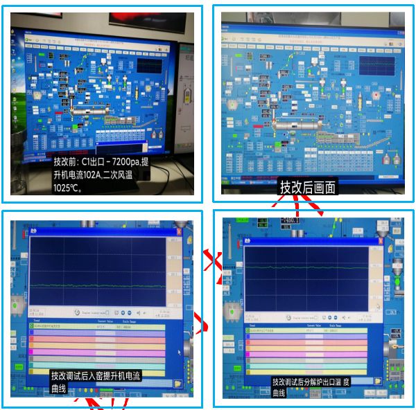 通過(guò)近一個(gè)月的緊張檢修和技術(shù)調(diào)試,熟料日產(chǎn)量穩(wěn)定在3200以上,預(yù)熱器系統(tǒng)阻力降低800Pa左右,通過(guò)持續(xù)的優(yōu)化操作,國(guó)慶節(jié)前夕更是創(chuàng)出日產(chǎn)量達(dá)到3383噸的好成績(jī),各項(xiàng)指標(biāo)又提升到了一個(gè)新的高度。水泥磨經(jīng)過(guò)調(diào)試后P.C32.5和P.O42.5水泥臺(tái)時(shí)分別提高了10t/h和15t/h。