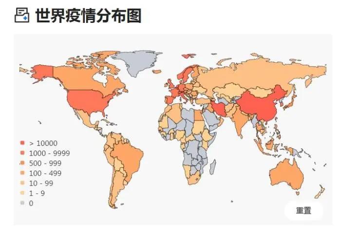 世界疫情分布圖。