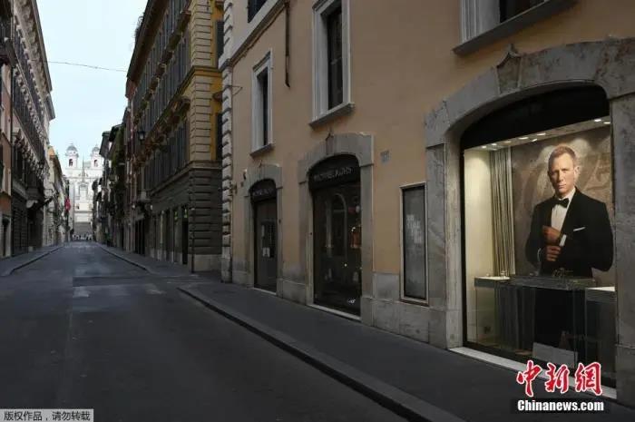 當(dāng)?shù)貢r(shí)間3月12日,意大利羅馬市中心一條購物街上,店鋪關(guān)閉,空無一人。