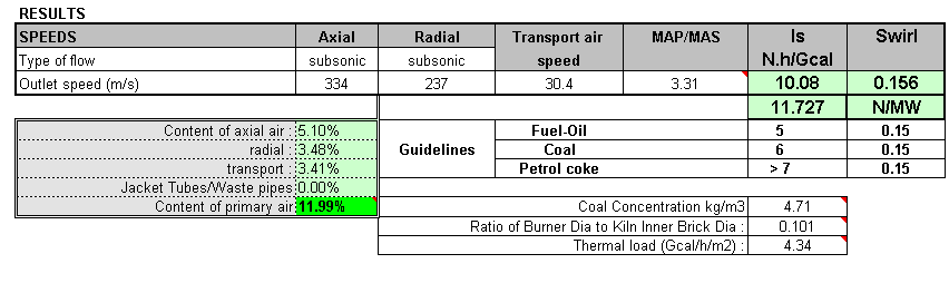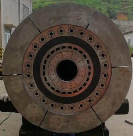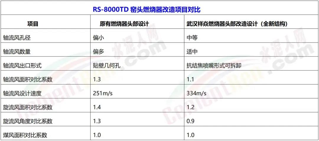 新改造的燃燒器頭部為拉法基歐洲專供機型,此次定項設(shè)計RS項目窯頭燃燒器頭部尺寸改造,通過軸流風(fēng)動能增加軸流風(fēng)的推力率,以旋流風(fēng)模式重新設(shè)計并修正氣動角度,燃燒器頭部改造后的直接效果,促使更大范圍的高溫?zé)煔饣亓骷皟?nèi)部氣流的交換速率提升,提高著火能力,強化煅燒,有利于強度,密度,能耗,產(chǎn)量等多方面的優(yōu)化改善,燃燒器頭部結(jié)構(gòu)也得到優(yōu)化大幅延長使用周期。