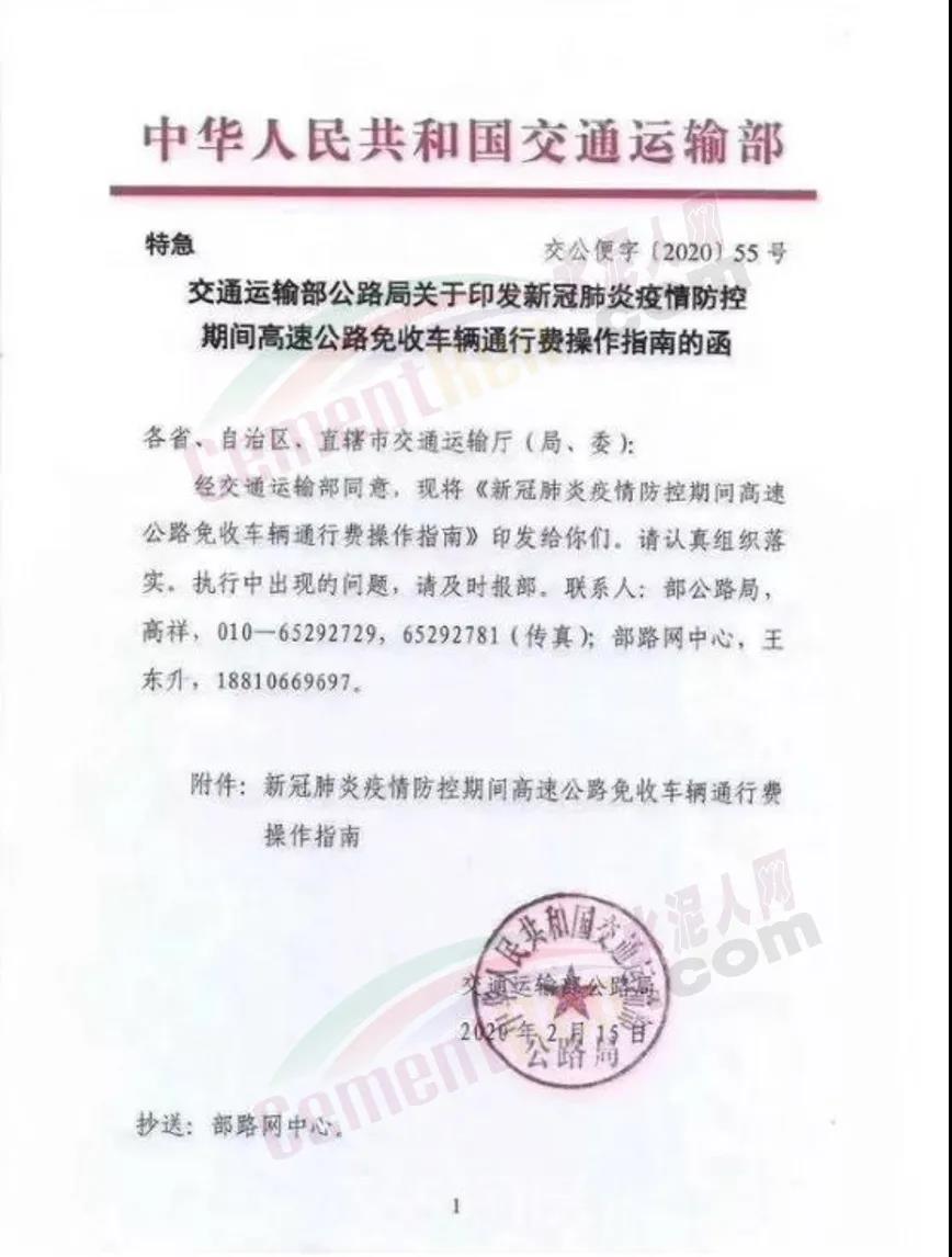 2月15日,交通運(yùn)輸部正式發(fā)布通知:2月17日零時(shí)起至疫情防控工作結(jié)束,全國(guó)收費(fèi)公路免收車(chē)輛通行費(fèi)。根據(jù)最新下發(fā)操作指南,目前暫定免費(fèi)時(shí)間是到6月30日。高速公路免收車(chē)輛通行費(fèi)政策的出臺(tái),對(duì)疫情期間復(fù)工困難的廣大企業(yè)來(lái)說(shuō)是一個(gè)利好的消息,有助于降低企業(yè)運(yùn)輸成本,減少資金壓力。同時(shí)對(duì)水泥價(jià)格的穩(wěn)定形成了沖擊。