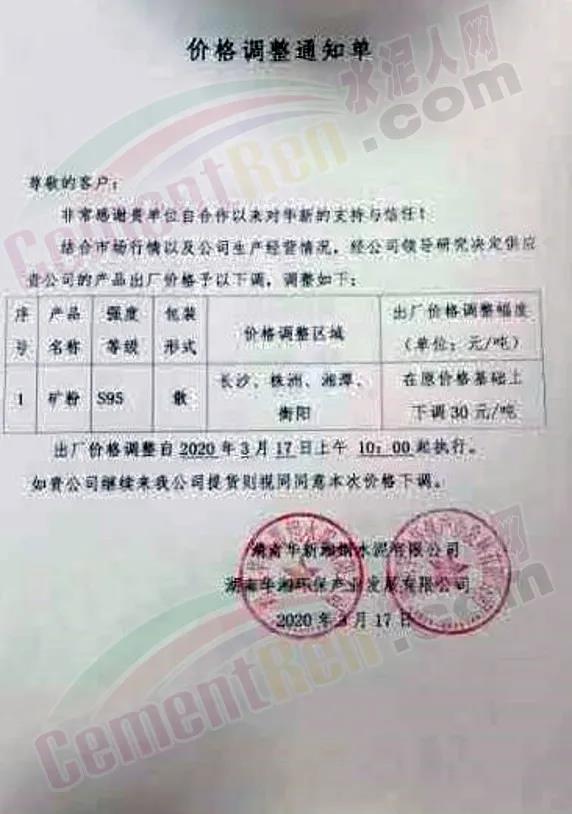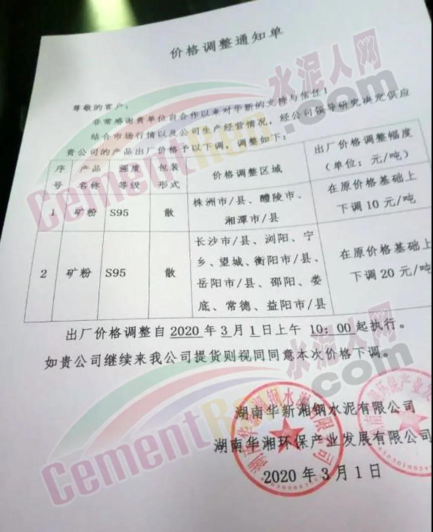 同期主導(dǎo)企業(yè)通知礦粉價(jià)格下調(diào),3月1日下調(diào)10~20元/噸;