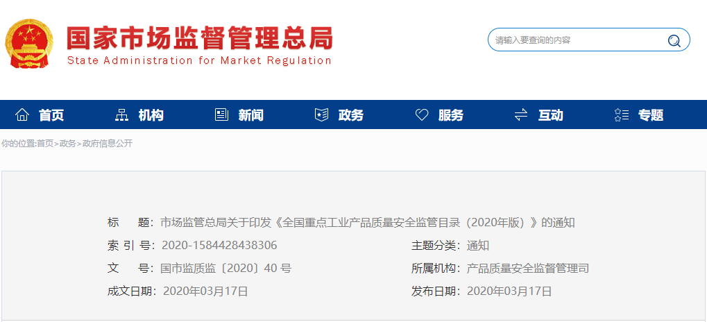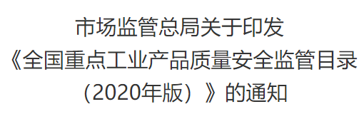 為貫徹落實(shí)《質(zhì)量發(fā)展綱要(2011-2020年)》關(guān)于“制定實(shí)施國家重點(diǎn)監(jiān)管產(chǎn)品目錄”的要求,市場監(jiān)管總局在總結(jié)《全國重點(diǎn)工業(yè)產(chǎn)品質(zhì)量安全監(jiān)管目錄(2019年版)》實(shí)施經(jīng)驗(yàn),綜合分析監(jiān)督抽查、生產(chǎn)許可、風(fēng)險(xiǎn)監(jiān)測、執(zhí)法打假、國內(nèi)召回通報(bào)、網(wǎng)絡(luò)輿情報(bào)道等數(shù)據(jù),并征集相關(guān)單位意見的基礎(chǔ)上,認(rèn)真分析研究防范疫情工作中反映出的新問題,堅(jiān)持問題導(dǎo)向,聚焦監(jiān)督抽查合格率低、各方面反映問題較為突出、涉及重大質(zhì)量安全或國家有關(guān)政策文件要求重點(diǎn)監(jiān)管的工業(yè)產(chǎn)品,制定了《全國重點(diǎn)工業(yè)產(chǎn)品質(zhì)量安全監(jiān)管目錄(2020年版)》(以下簡稱《目錄》)。現(xiàn)就有關(guān)事項(xiàng)通知如下: