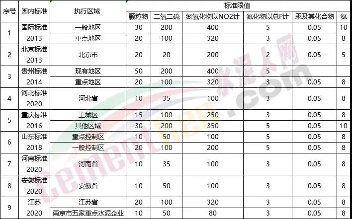 國內(nèi)相關(guān)標(biāo)準(zhǔn)對比情況一覽表(水泥窯)