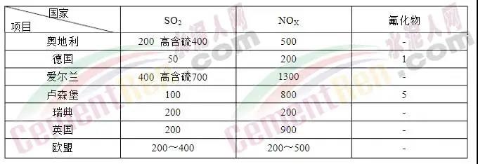 國外水泥窯SO2、NOX、氟化物排放標(biāo)準(zhǔn)