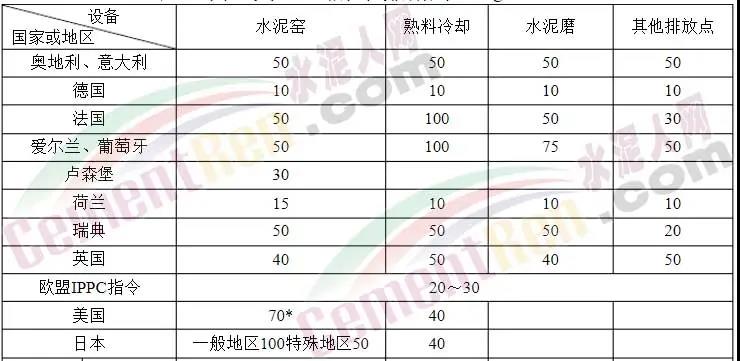 國外水泥工業(yè)顆粒物排放標(biāo)準(zhǔn)
