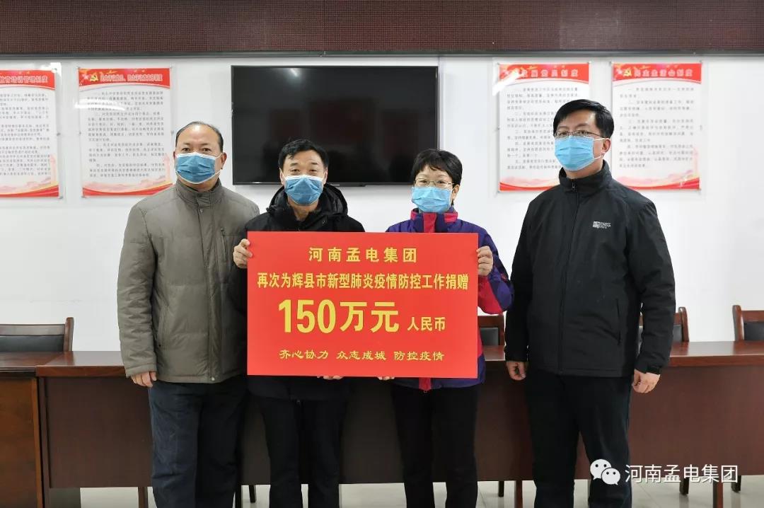 1月29日,集團(tuán)黨委主動(dòng)向輝縣市慈善協(xié)會(huì)捐款500萬元,2月1日再次捐款150萬元,助力全市抗擊新型肺炎,堅(jiān)決打贏疫情防控阻擊戰(zhàn)。