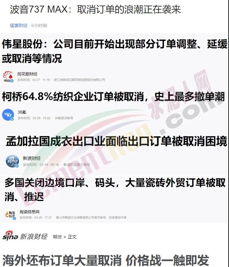 3月的最后一個(gè)星期,中國(guó)的外貿(mào)工廠(chǎng)正在承受新冠疫情暴發(fā)以來(lái)的第二波壓力。隨著新冠疫情在海外的加劇,多國(guó)經(jīng)濟(jì)面臨崩潰邊緣,很多企業(yè)也迎來(lái)了史上最多的撤單、棄貨行為。據(jù)浙江一份行業(yè)調(diào)查報(bào)告顯示,有78.4%的紡織企業(yè)表示訂單在減少,64.8%的企業(yè)反映已有的訂單被客戶(hù)取消。