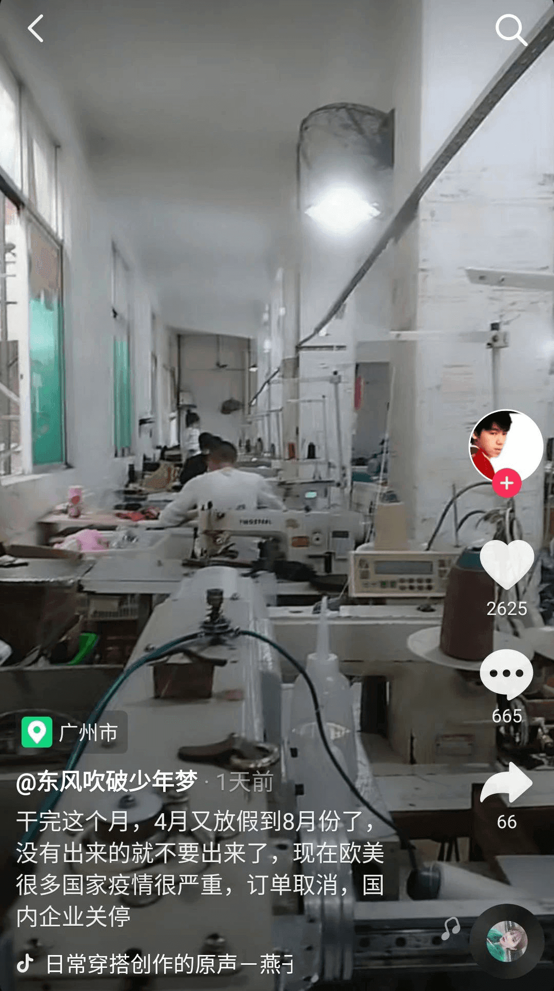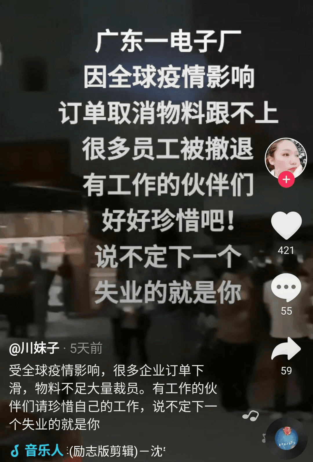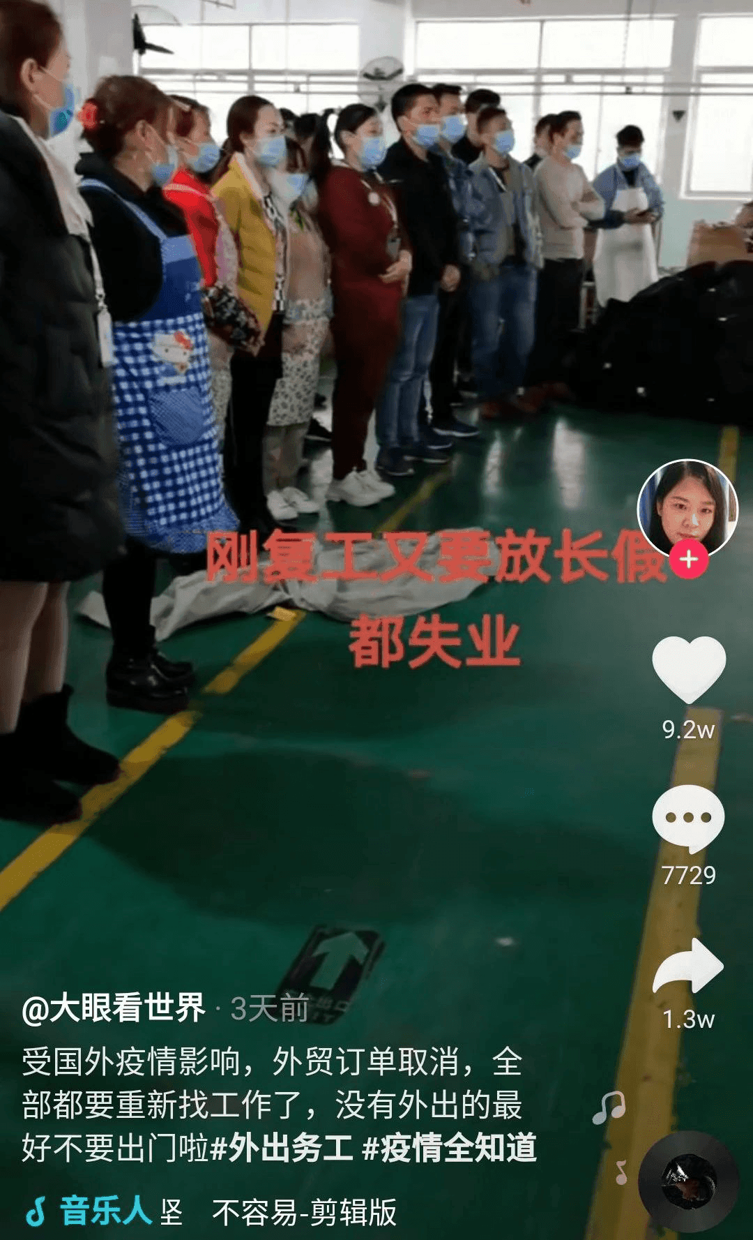 剛剛從國(guó)內(nèi)延遲復(fù)產(chǎn)復(fù)工的第一波壓力中走出來(lái)的中國(guó)外貿(mào)企業(yè),又將迎面承接第二波壓力:由于國(guó)外疫情控制導(dǎo)致的延遲消費(fèi)、 訂單擱置或者取消,不得不剛開(kāi)工即按下暫停鍵。廠(chǎng)房租金和稅費(fèi)要付,工人工資要付,部分企業(yè)已開(kāi)始裁員……中國(guó)近五千萬(wàn)外貿(mào)從業(yè)人員正在集體承擔(dān)壓力。放假至少還有回來(lái)復(fù)工的機(jī)會(huì),但下面這些企業(yè)和員工就沒(méi)這么幸運(yùn)了。部分企業(yè)訂單取消,物料也跟不上,索性裁員一勞永逸,廠(chǎng)子也幾近放棄狀態(tài)。某企業(yè)半個(gè)月前還在大量招工,突然就宣布噩耗,門(mén)店關(guān)閉,臨時(shí)工隊(duì)伍解散,廠(chǎng)區(qū)內(nèi)有很多工人不禁潸然淚下,不知是在為自己的遭遇難過(guò),還是在為整個(gè)家庭的未來(lái)?yè)?dān)憂(yōu)。
